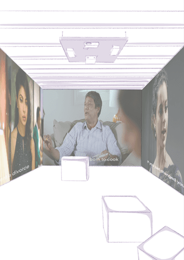 The exhibition consists of six interactive rooms designed to simulate different stages of emotional abuse awareness: